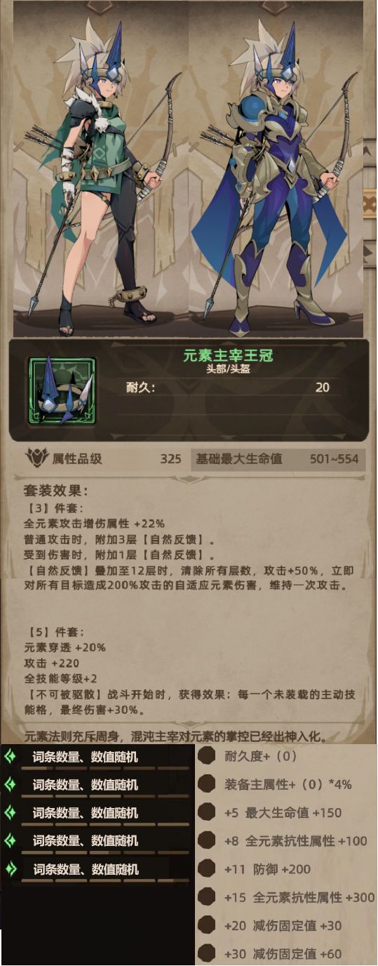 套装效果:元素增伤、元素穿透、攻击、全技能等级、最终伤害、【自然反馈】强化。