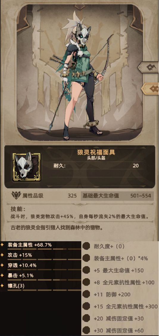 关键词:主属性、攻击、穿透、暴击、镶孔、自残、【狼】攻击提升。