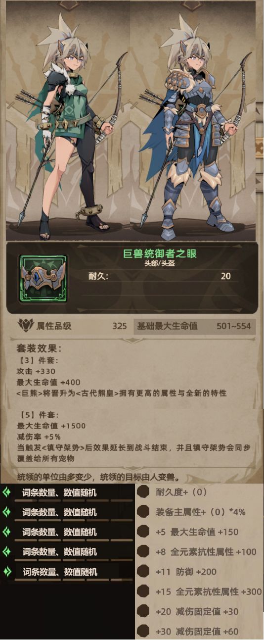 套装效果:攻击、生命、减伤、【巨熊】强化。