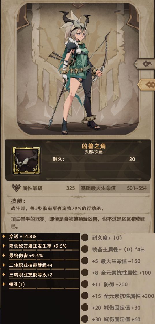 关键词:穿透、降低肃正、最终伤害、二转技能等级、三转技能等级、镶孔、宠物攻速提升23.33%。