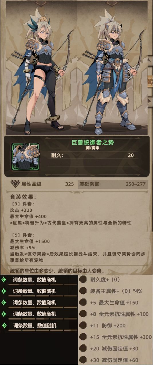 套装效果:攻击、生命、减伤、【巨熊】强化。