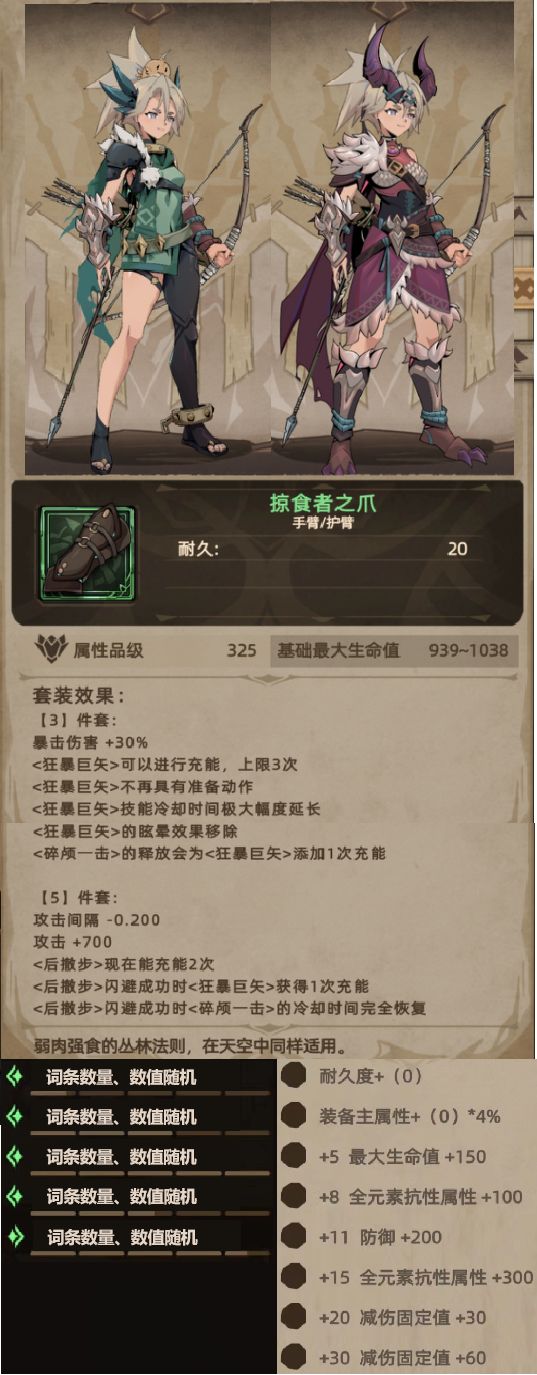 套装效果:爆伤、攻速、攻击、【狂暴巨矢】强化、【后撤步】强化