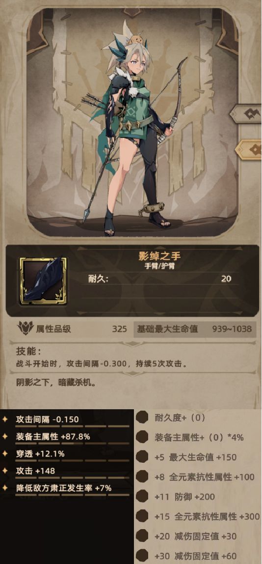 本系列图鉴中,左下方表示装备词条,右下方表示强化属性