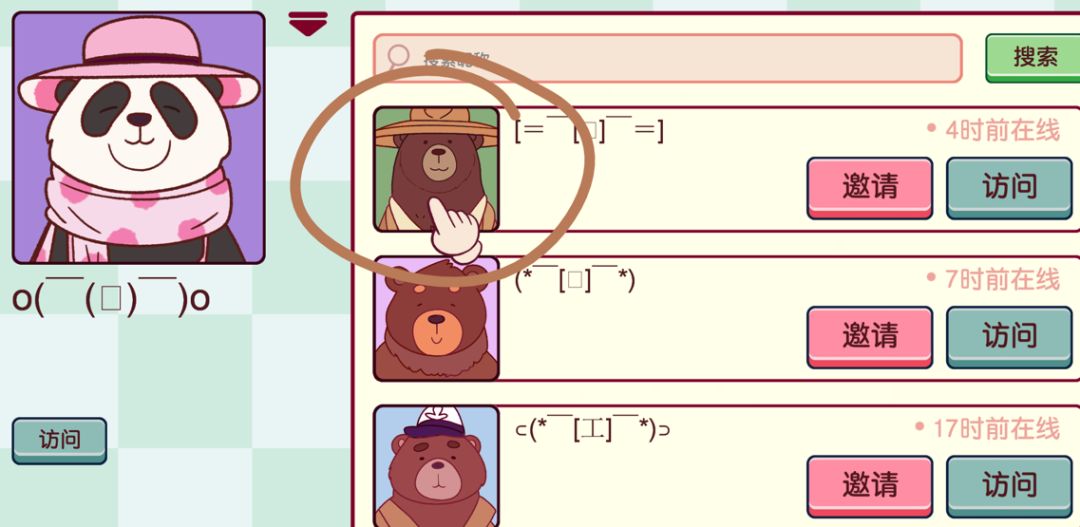 第二天波尔卡圆点熊会来,开始大型连续剧《人脉》,这次需要找带着园艺帽、喜爱整洁和线条的熊熊。点进波点粉熊熊的主页,可以找到园艺熊熊: