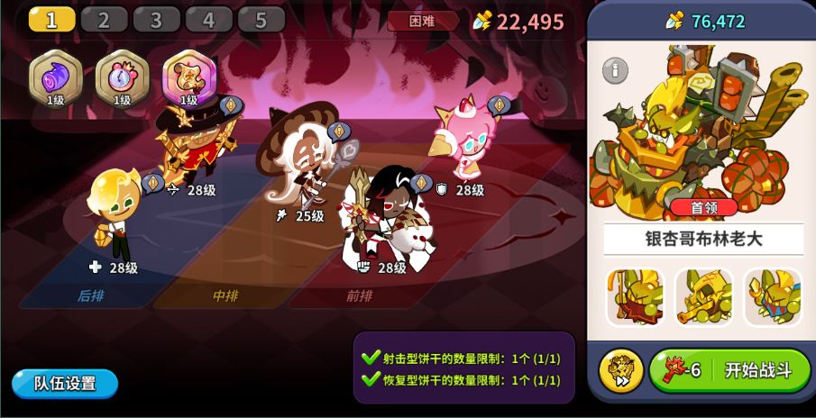 第十五层的buff限制一位射击型一位恢复型。以下阵容即可过关。饼干均为携带配料,技能等级均为10级。