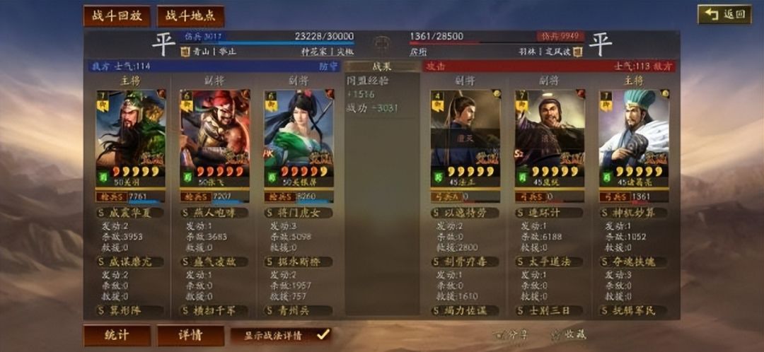玩关妹据水自然必不可少,盛气加横扫的输出以及控制效果也不可或缺,青州兵看似和盛气很冲突,但是实战你会战法,影响也不大并且青州最重要的还是后面回合的回复效果非常哇塞,关羽的威谋给对面虚弱效果且为准备战法可以出发关羽兵书的先攻效果,畸形阵就不用说了,现在的阵容千篇一律,二加一锋矢阵容非常常见,畸形阵也就显得尤为关键!
