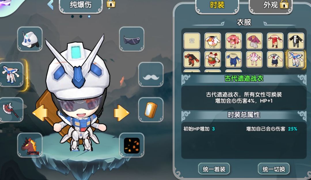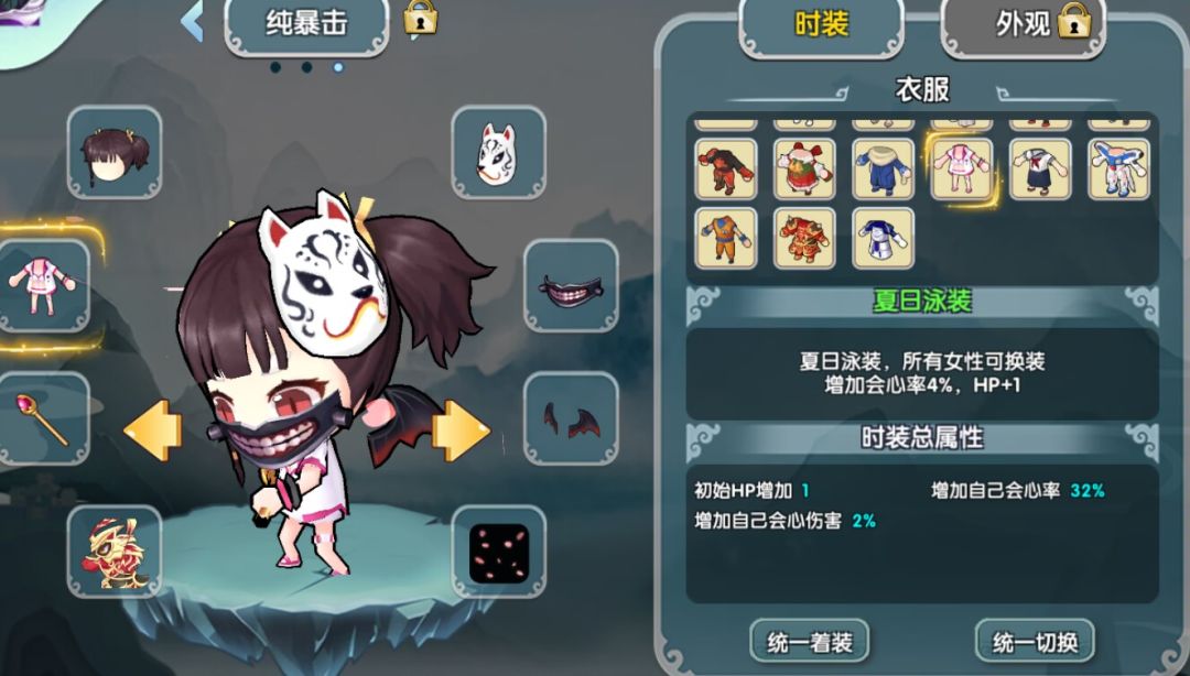 下面是第二版的(感谢四夕大佬提供的服装图),加入了一些新出的服装。金币套装和积分套比较少,而且属于特殊用途,不在累赘。主要属性分:暴击、爆伤、减暴击、减爆伤、加过路费、减过路费、专武7、减专武10、血套11、初始资金。