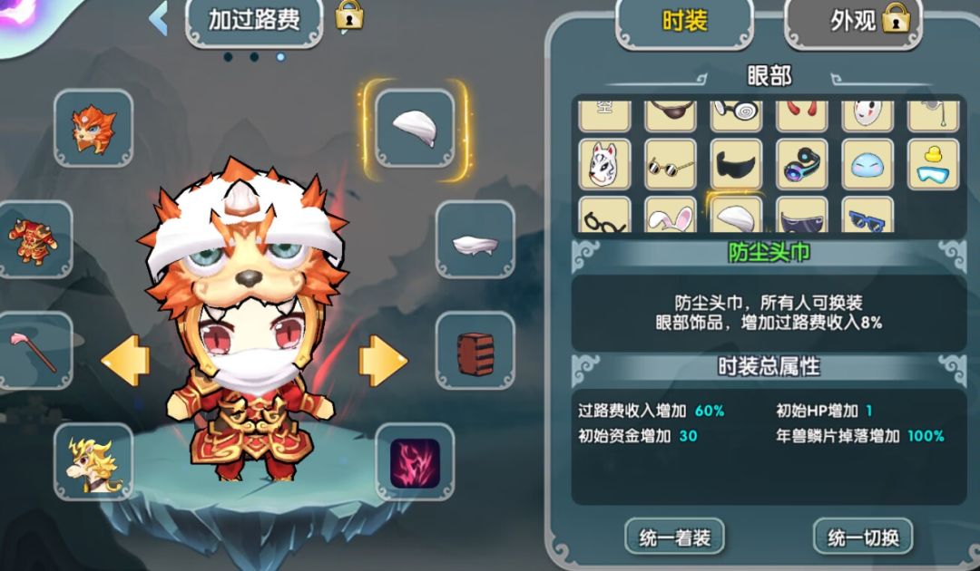 武道商店眼部还有个10%的,但估计魔神也没人买的。所以极限过路费是67%。游戏内SSR觉醒是240%左右。低配些过路费套也有不少。还有匹氪金的过路费马(仙鹿)满级+11%过路费,副技能是概率再扔一次色子。