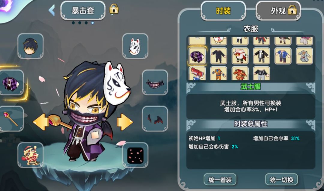 ①暴击。头和衣服男女对应,其他通用。新服装衣服部位都出了一个只+5%会心率的。全套比较便宜且必氪。