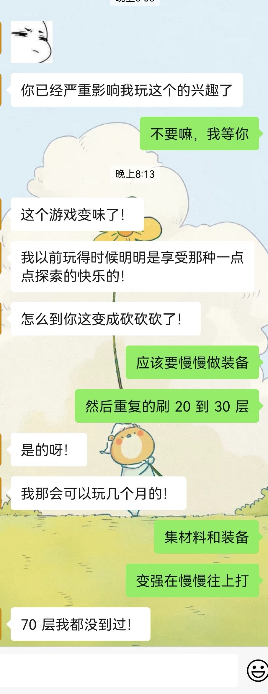 哈哈哈,前三张是我的属性,后三张是他的!我们充了一样的钱!我还在无伤过70层