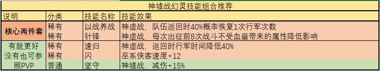 除了核心两件套以外,剩下的技能并不太重要,除了两个神墟专属的速归和坚守,剩下的参照pvp标准选就好,推荐用加巫速的,稳定先手控制。