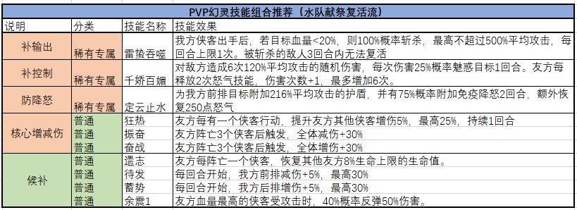 对于PVP来说,因为场景和套路众多,不同的套路场景,也适合用不同的技能组合。这里就分具体类别来说一说各种幻灵技能的适用场景。