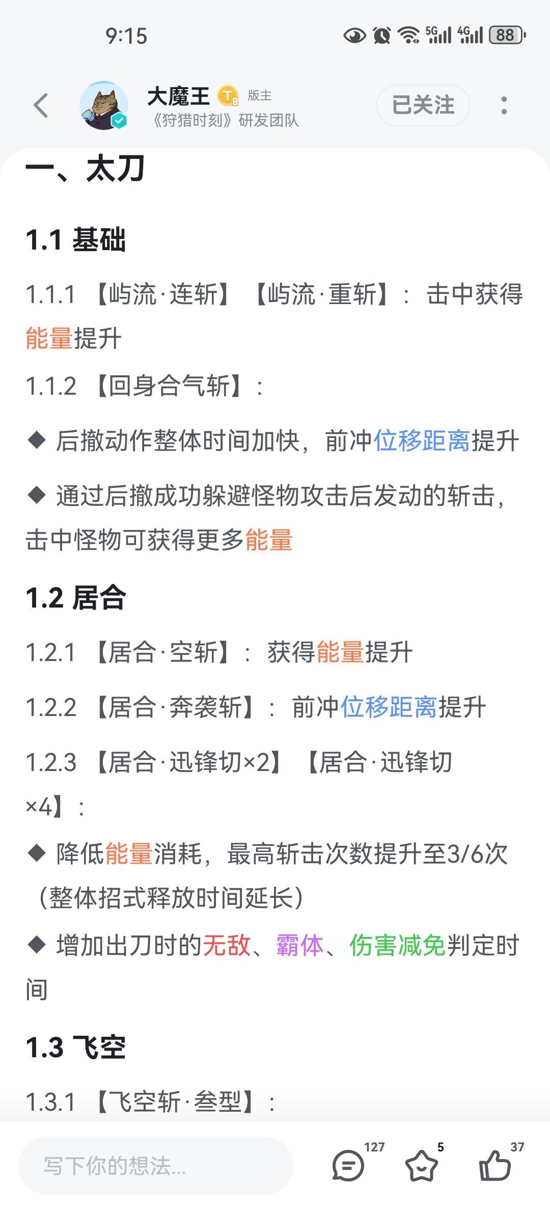 三 手感各有利弊:1.居合有拔刀斩一瞬间的无敌和后续切切切的霸体(改版后双双延长),飞空有起跳一瞬间的无敌以及飞空霸体减伤增加。2.追怪脚力都加强。居合是迅锋切随时可以续奔袭斩追怪而不用打断攻击链,属于前后都追怪,如视频;飞空是先蓄力追怪然后蜉蝣切,只有前追怪。