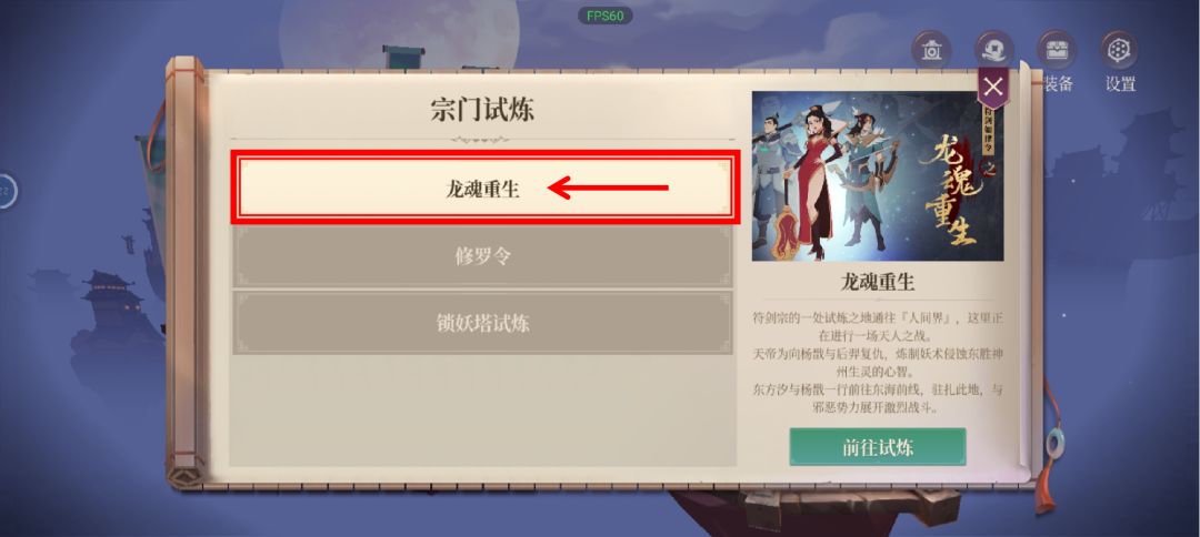 进错了!新人刚创建好名字以后,不要点那个进入游戏,要点【宗门试炼】→【龙魂重生】→【前往试炼】才对。