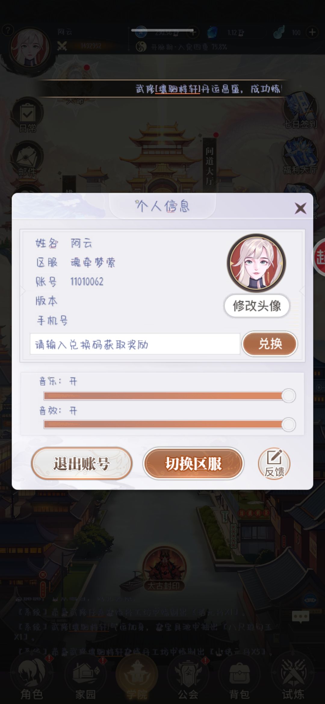 探索完之后相信大家都收获了一背包丹药材料和大把经验,这时候出去把等级升起来,材料到家园里的炼丹工坊炼制增加修为的丹药,至于出什么品质的就看脸了,等级提升之后也就解锁了市场和功法楼了,功法楼直接拉满,市场的话只建议买当前境界的丹药(丹药材料)和装备锻造材料,强化材料和修炼材料里的前期直接拉满,玩几天就可以看需求斟酌购买了,其他的话不是太建议(增益资质类属性的丹药建议解锁问道大厅到问道大厅用任务给的学院积分购买,花很少的分一次可以买10个,两天就可以买满上限,省时省财)