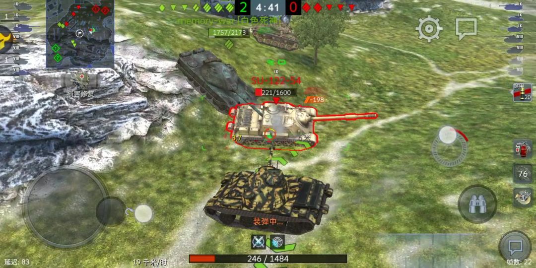 (友情注视)在注视完以后我们互相开炮,59P毫无疑问的击穿了4190,而4190的炮弹被59P的炮塔弹开。