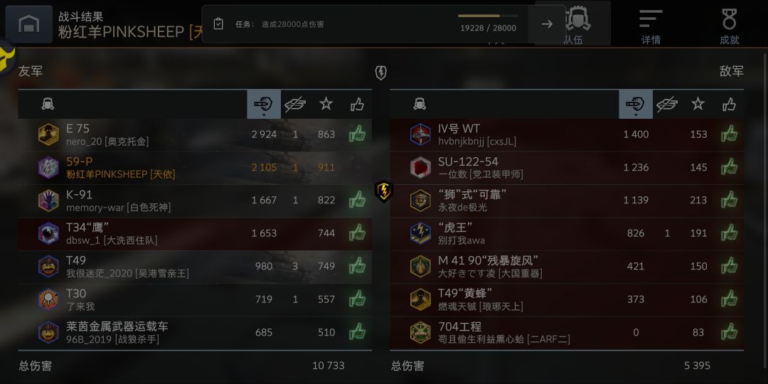 幸亏队友天降神兵(CQC*3),一下撞断了12254的腿,我的59P侥幸逃脱。
