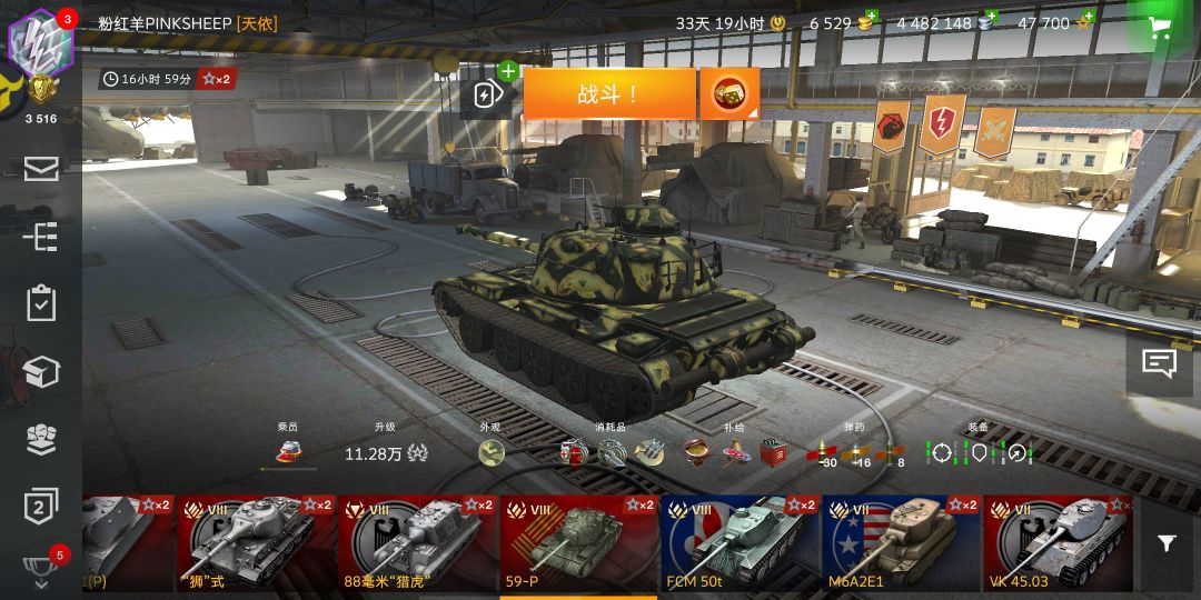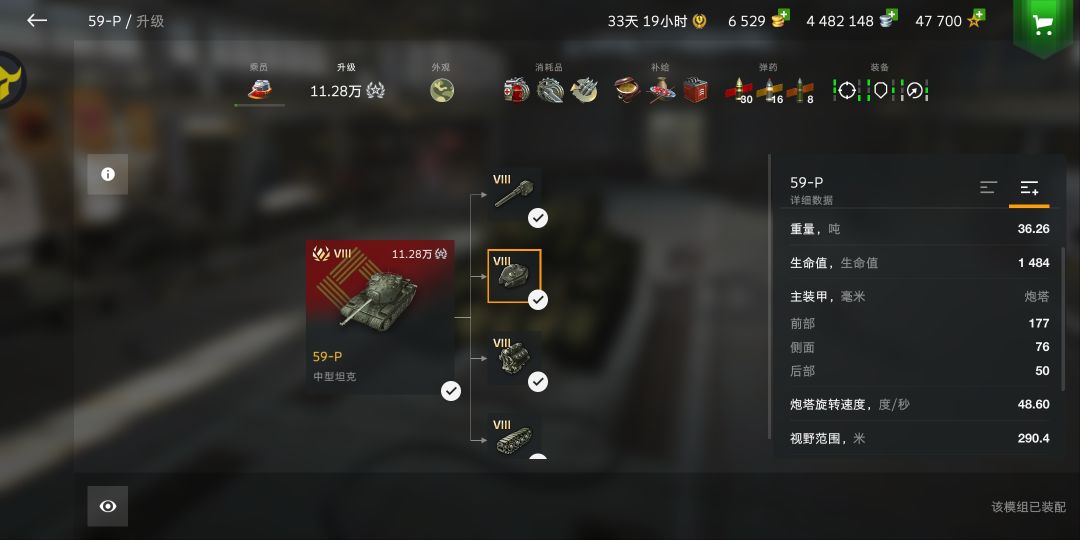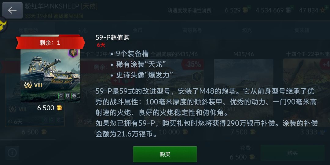 平心而论,59P的炮其实手感还不错,不论是精度还是缩圈都比同级C系兄弟好很多(小口径的快乐),180穿深很多人觉得不够,那去试试-6的第一杆炮?如果你没有-6,但是还打端游,建议现在的WZ111试试。