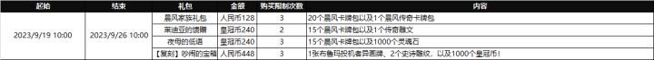 本周(9月19日-9月25日)礼包更替说明如下图