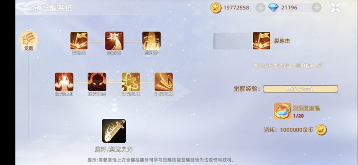 关于觉醒技能的触发:当你终于点出了觉醒技能之后,很多人就懵逼了,居然不能用,当然觉醒技能的使用,是需要你对怪物触发40次左右的伤害,才会弹出来技能图标使用。触发最快的当然就是大魔神了,普攻加技能打boss觉醒根本不会断。觉醒技能可以存,也就是说你可以这个图刷出觉醒技能,然后进下一个图觉醒技能图标不会消失。