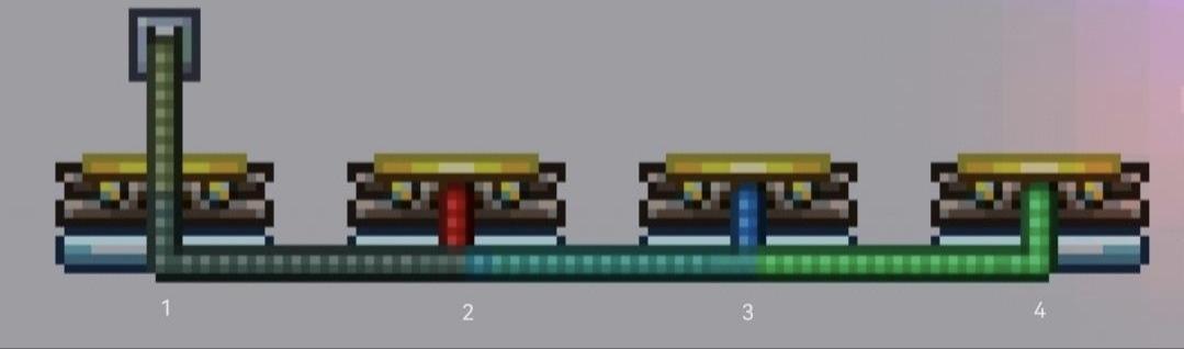 在泰拉中,电源便是根节点,除电源外的相连的每一格电线都是一个子节点(或者叶节点)。电源触发用电器,实际上是对周围所有相连的电线进行遍历,遍历至用电器的那一格即对其触发。也就是说,同线电器的触发顺序取决于游戏本身采用的搜索算法。