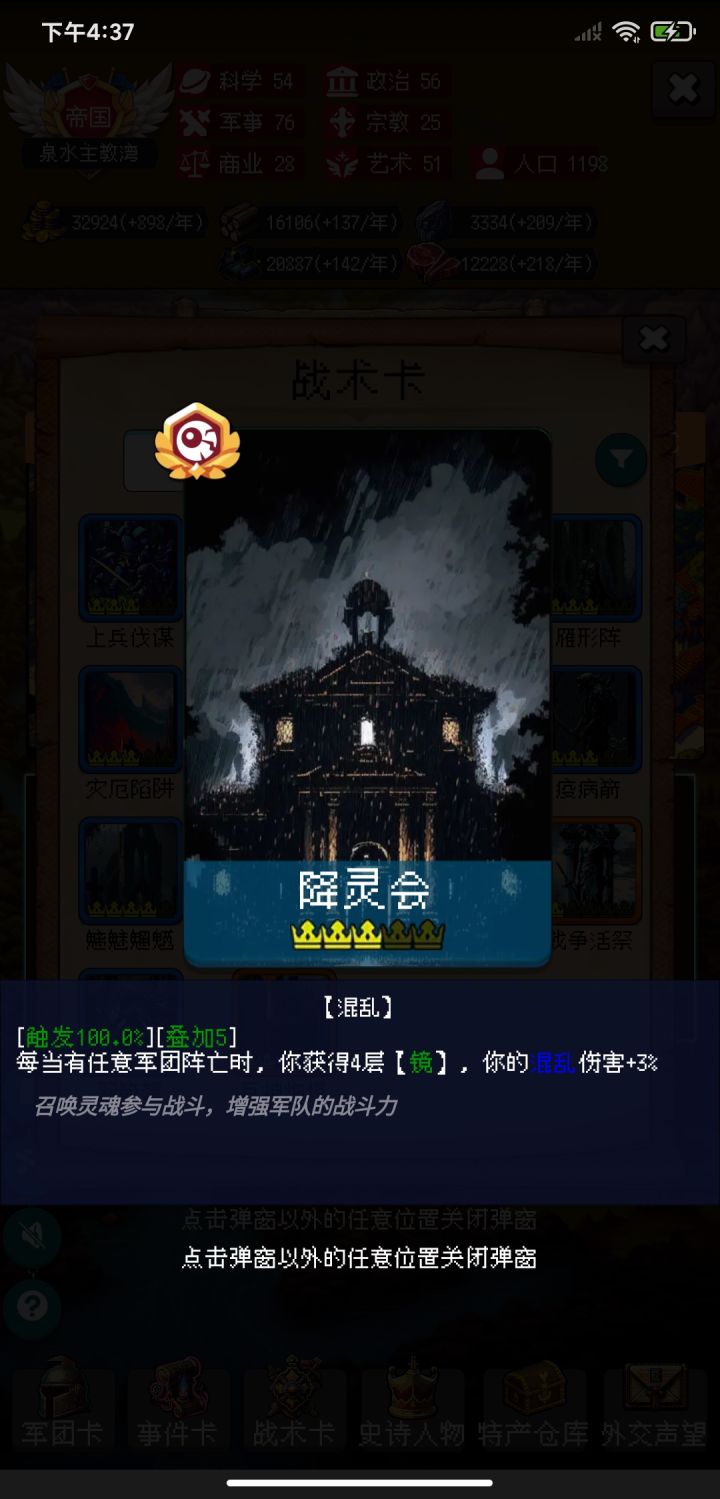 🍂抗揍组合→①步兵增援 +②降灵会 (没错,基本上很少会有人用到降灵会,战场死亡一个人,获得4个镜,相当于可以抵挡4次攻击 先用步兵增援,然后步兵挂掉,获得4次镜免伤,效果很好用。但是要保证骑兵在后续能强力输出)
