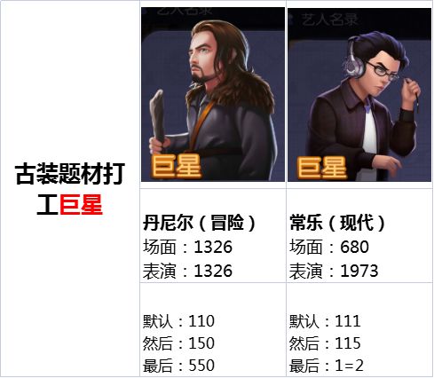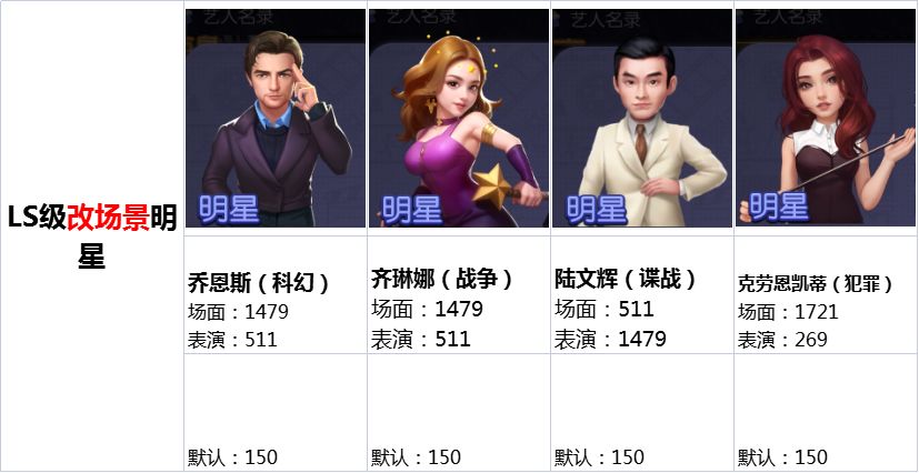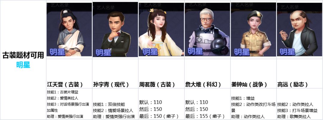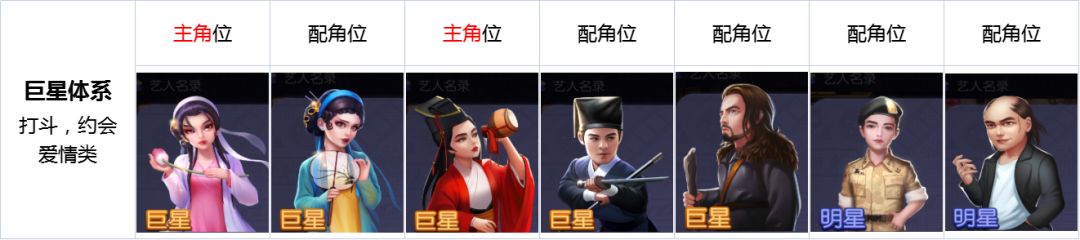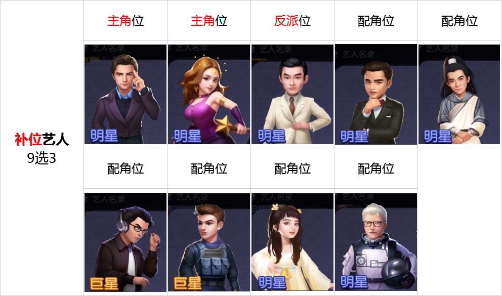 新增人物一般都是配角位置,(少数为主角位置)可以上改场景的,变场景的、双倍技能的、稳定拉人的这些巨星艺人或者明星艺人