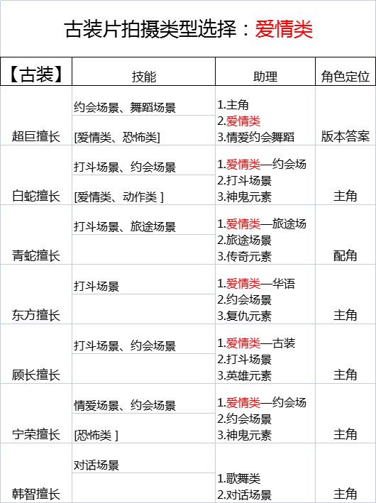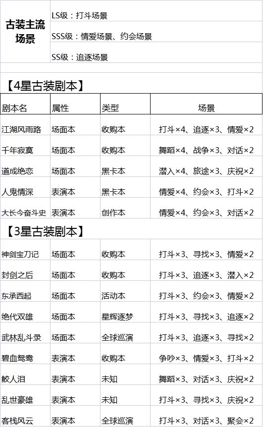 二.古装巨星定位、古装场景优先级、古装剧本场景概况
