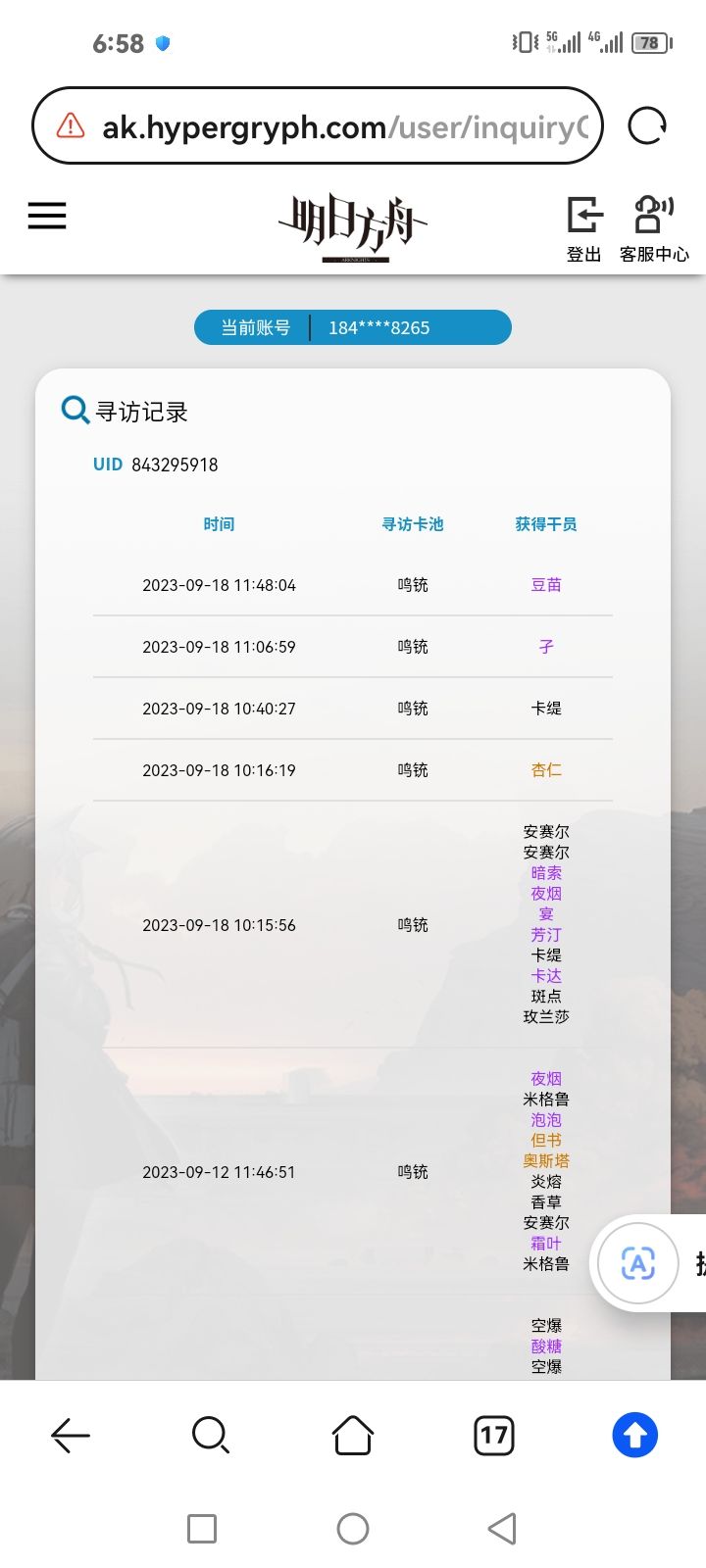 106发只出了一个金,是63抽的老鲤。