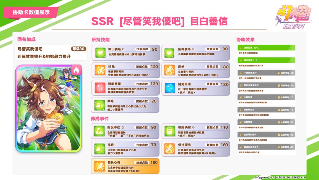 即将登场的SSR协助卡“[尽管笑我傻吧]目白善信”、SR协助卡“ 热身运动决不可懈怠]生野狄杜斯”数值公开!