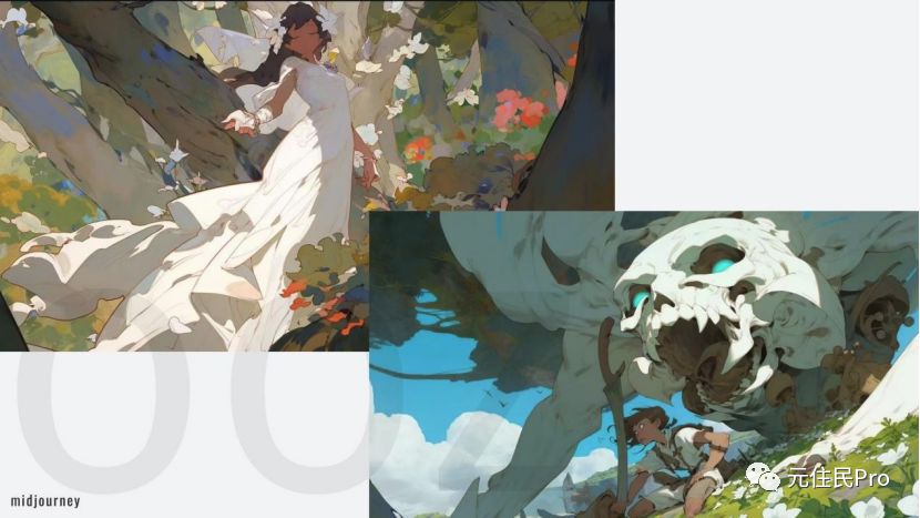可以明显看出,mj的生产图精细度更高,画面更细腻;sd则质量稍差一些