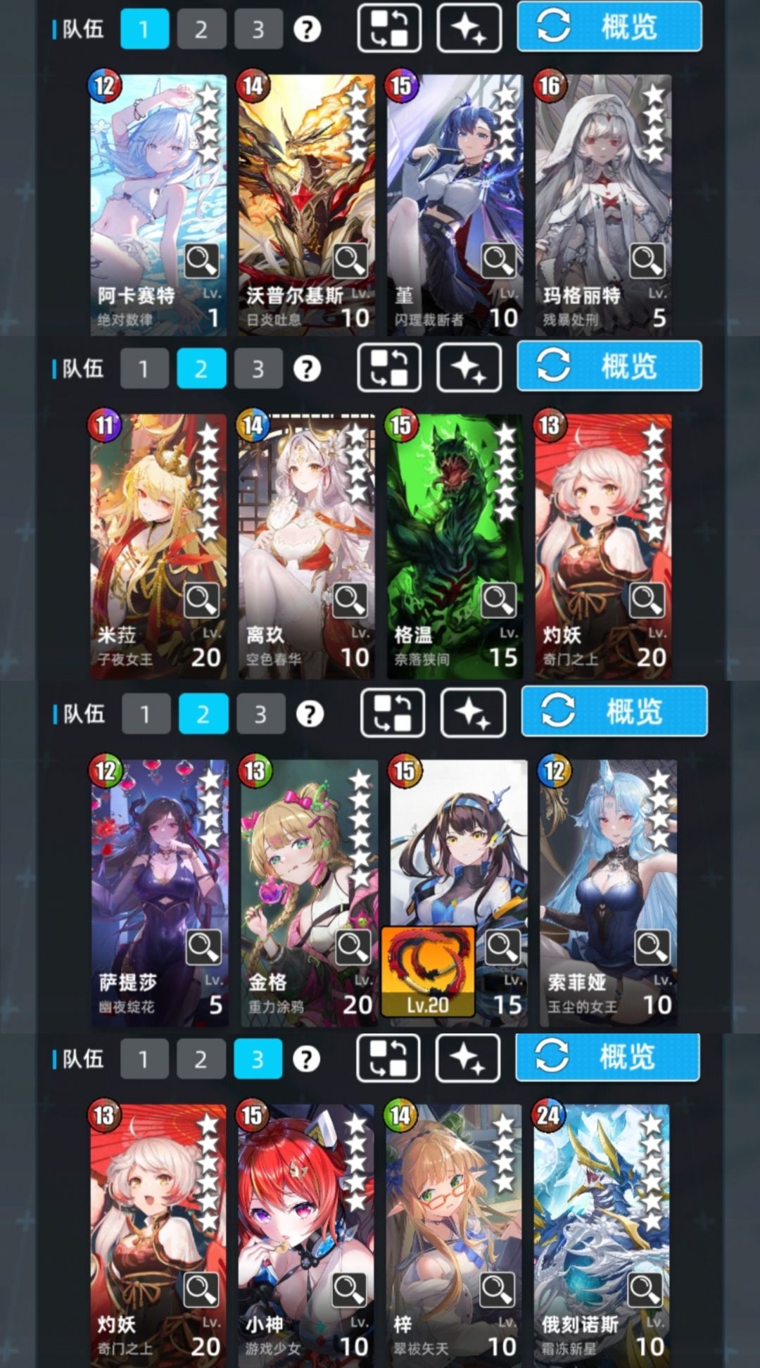 还有很多,比如金币队回能,金币叠叠乐,陇,诺恩等麻烦或难用的就不列了。
