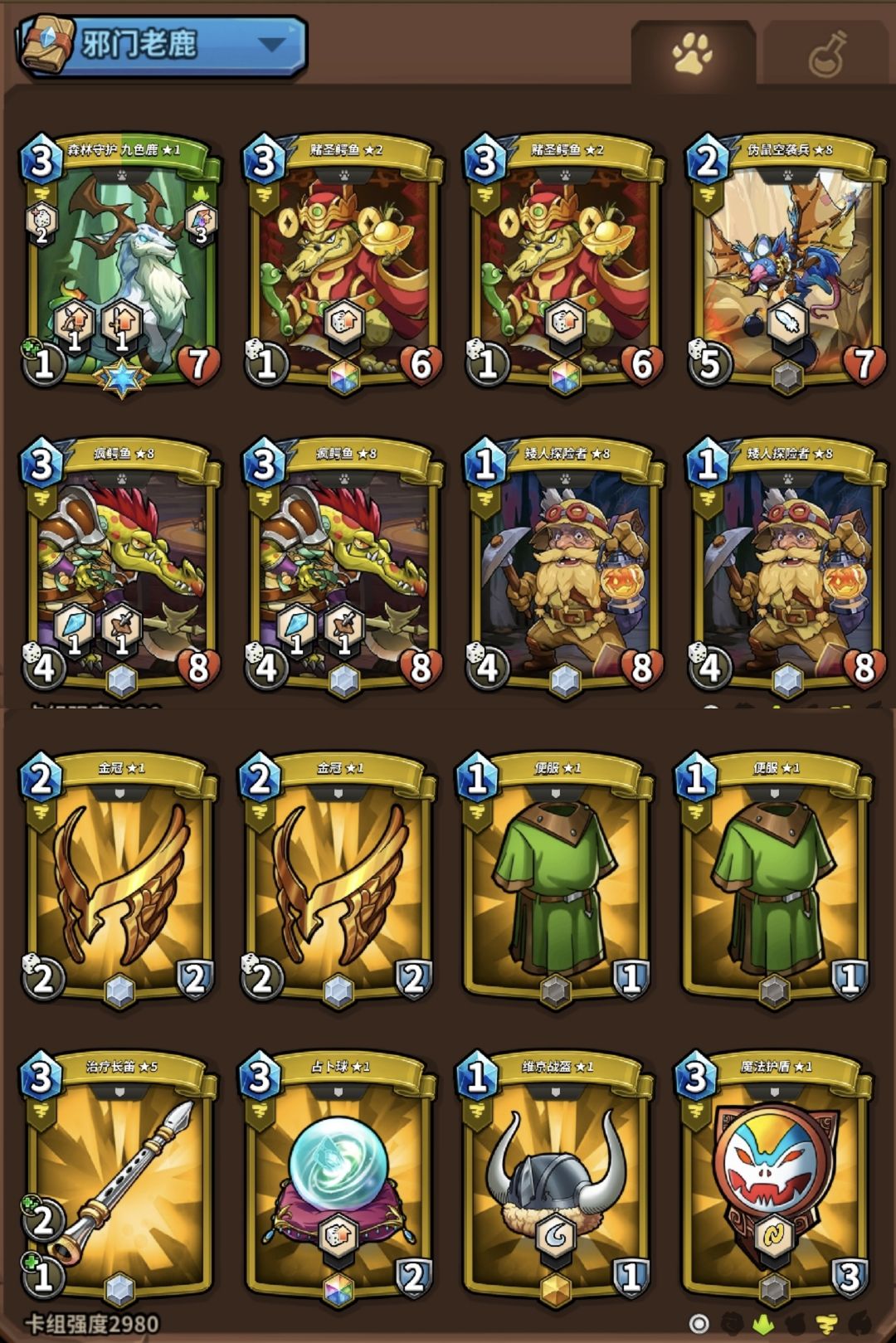 - 休闲模式做任务,推荐控制在3000卡强左右(称为压卡强),遇到的大多数都是人机或者娱乐卡组(当然也有可能遇到跟你一样压卡强的),压卡强思路是只把核心的一两张卡弄八级(你什么厉害带啥),其他卡尽量带1费的1级卡降低卡强。以下推荐几个我常用的休闲卡组,休闲基本稳赢,同时可以做以上所有对战任务(j仅供参考,思路对就行,可以换其他自己的核心卡)