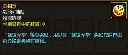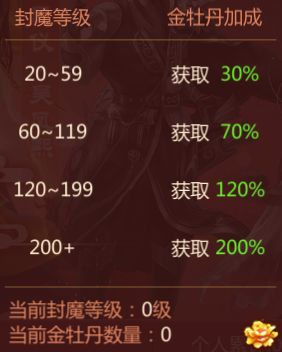 获取封魔经验提升封魔等级后可在此领取宝相玉,消耗宝相玉可在商店中兑换道具。