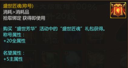 如果大家想快速提升封魔等级的话,可以购买盛世匠魂礼包,封魔等级将提升20级,下面梦梦就来介绍下礼包详情吧!