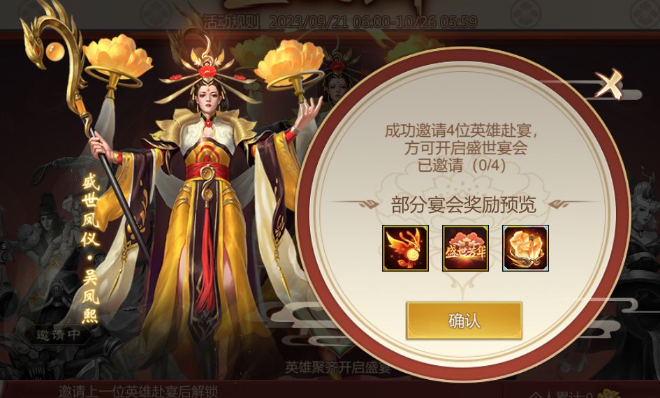 成功邀请四位英雄赴宴后,方可开启盛宴。