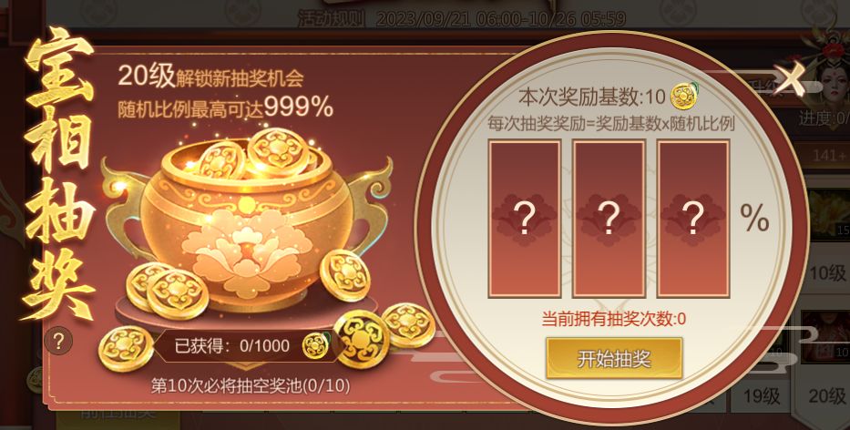 每次抽奖的奖励基数不同,玩家需通过随机比例数字决定此次的奖励。