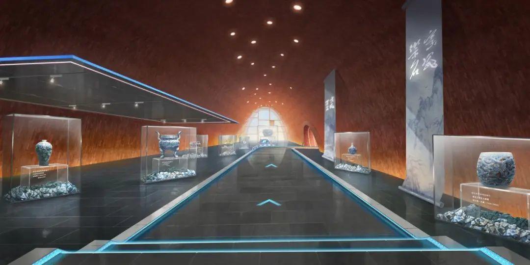 踏入御窑博物馆的展厅,左右两侧陈列着一排排古老而珍贵的瓷器,展示着御窑独特的艺术魅力。阳光透过展厅上方的孔隙洒下温暖的光束,细腻的蓝白纹饰焕发出独特的锋芒,仿佛在诉说着一个个流传千年的故事。