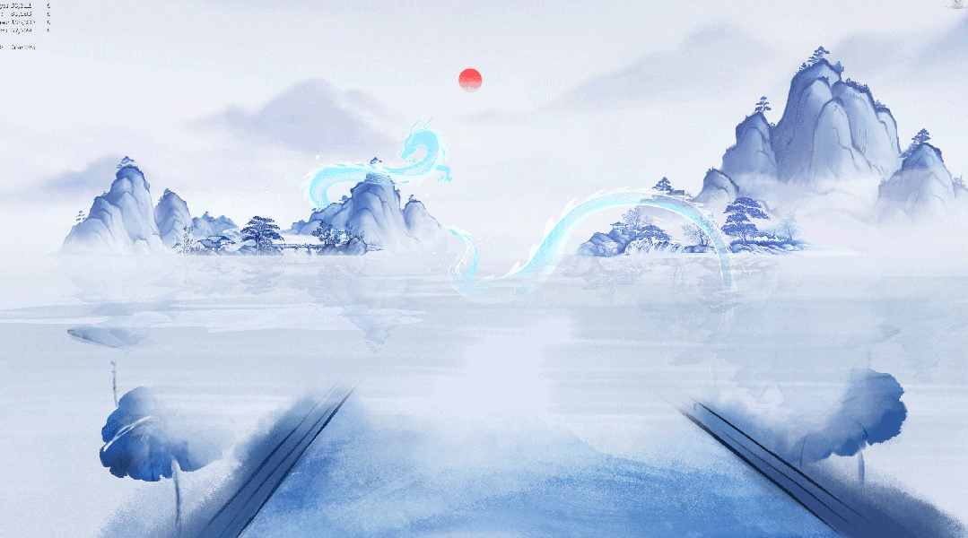 抵达赛道的终点,云雾渐渐散去,两侧荷叶轻轻摇曳,涟漪荡漾,如诗如画。远处青龙盘踞的山峰高耸入云,云雾缭绕其间。整个景象宛如一幅巨大的水墨画卷。