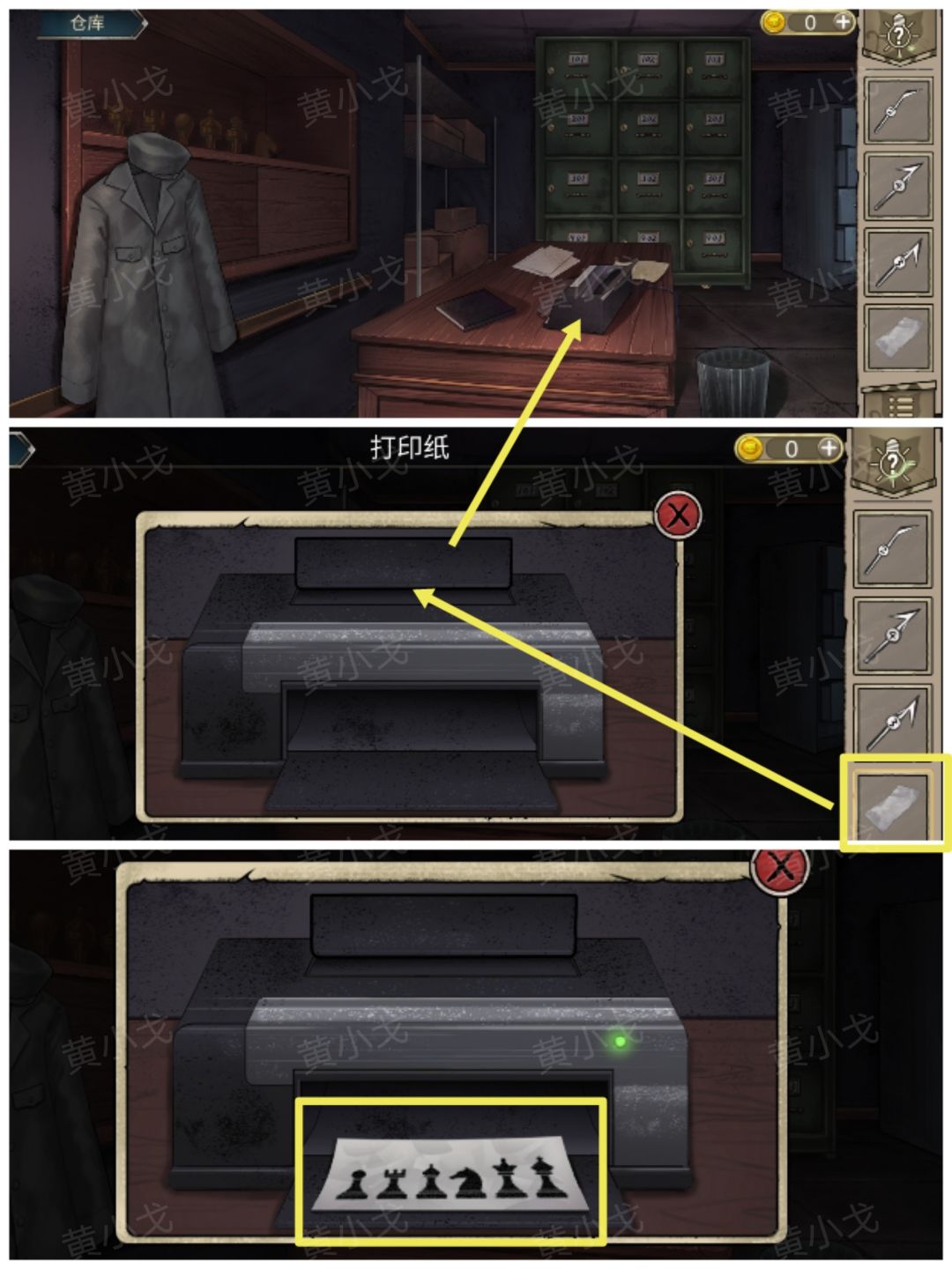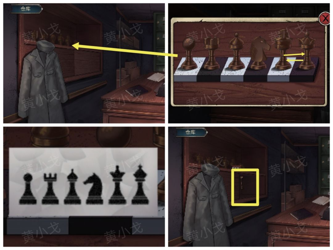 24.点击红色柜子上的棋子,根据【打印纸(新)】的线索,摆放棋子的位置,打开柜子,获得【星星钥匙】