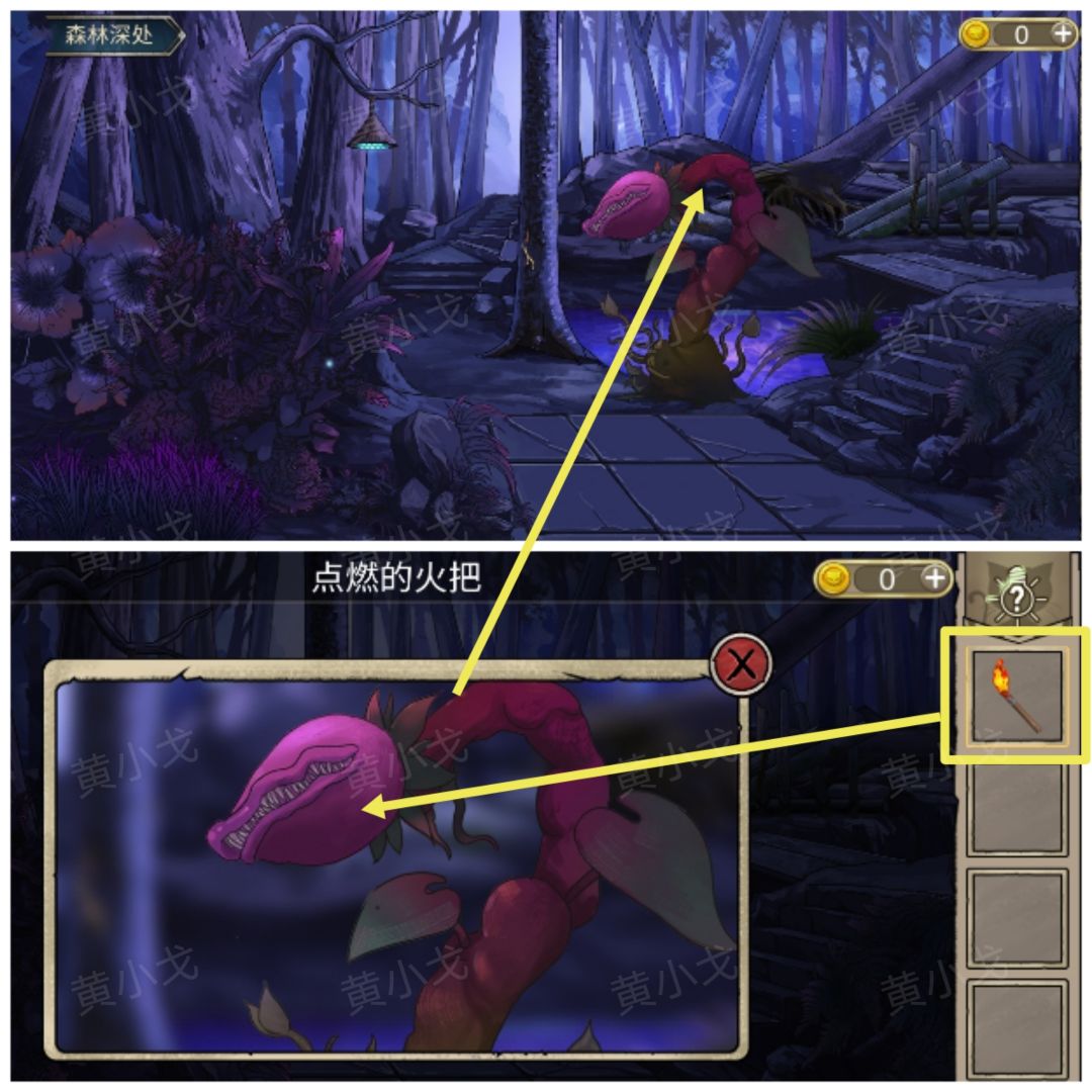 10.点击食人花,用【点燃的火把】烧