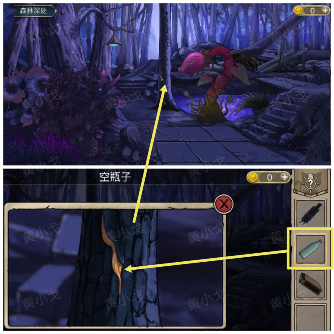 8.点击树,用【空瓶子】装【松油】