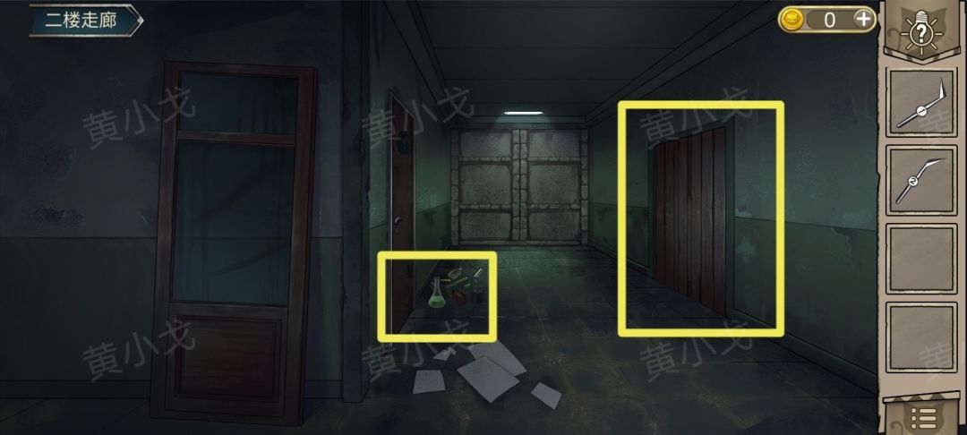 19.(二楼走廊)点击拾取地上的【溶剂】,点击右边的门,进入仓库