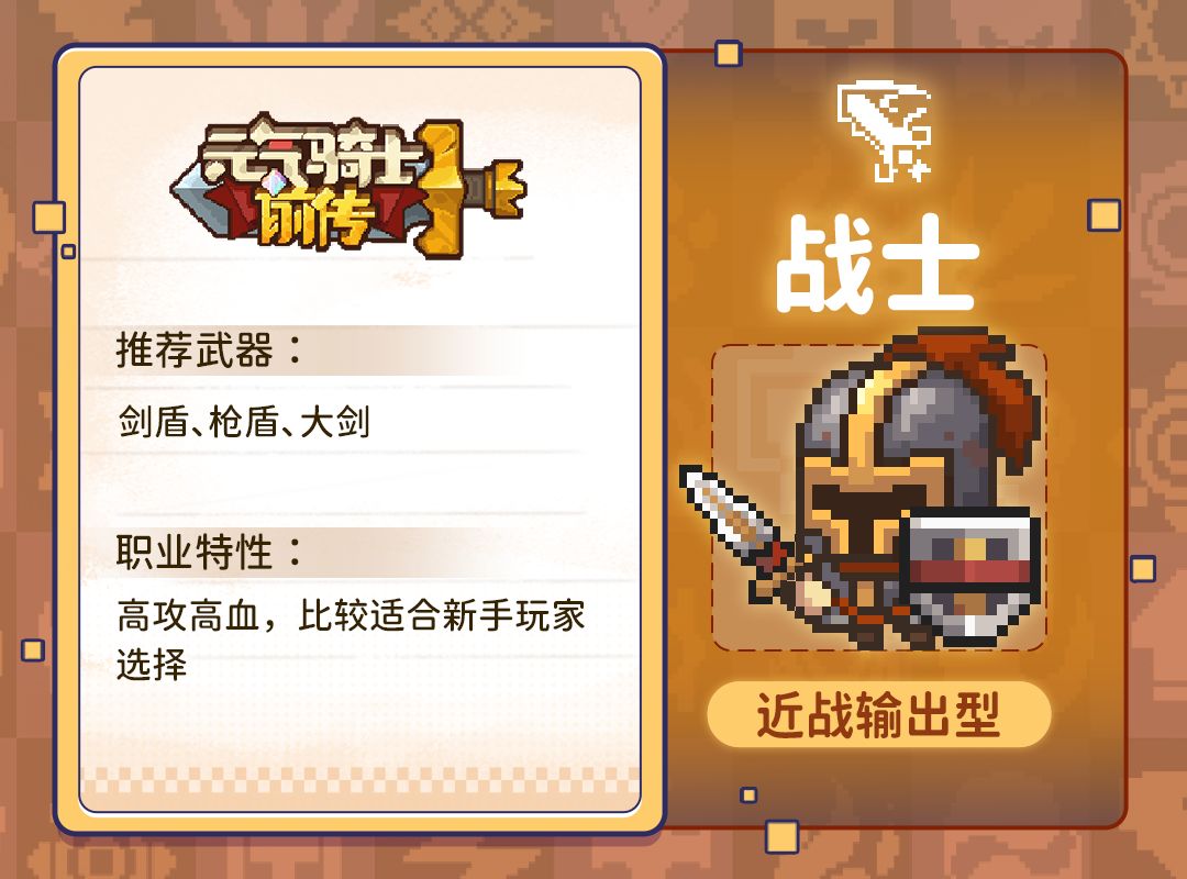 战士是近战输出型职业,擅长使用剑盾、枪盾和大剑作为武器,同时以力量作为主属性,不仅攻击力高,血量也很高,甚至能和BOSS硬碰硬,是非常适合新手选择的职业。