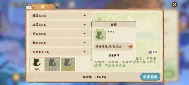 我从这个猫屋更新后就一直再等尺玉霄飞练,因为山志级没有写任何遇到的条件,我就认为是喂鱼肉就能遇见的,直到我撸猫六级,拥有可以遇见十三只猫的时候,狸花三花黑白均已齐全,空余一个位置总该是纯白的了吧?理论如此,实际上不行,我一直放的鱼肉想吸引纯白,一周未见起效,遂在社区发了个帖求答疑解惑,但也没有合理的解释,直到今天我把鱼肉换成鸡肉后,啸铁马上到了,占用了我第十三只猫的位置,由此可以得出结论,尺玉霄飞练和金丝虎,必须撸猫等级达到七级,才有遇见的可能。