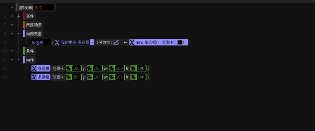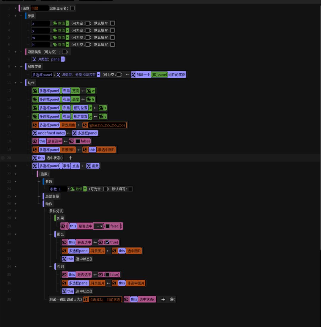 到此,多选框类的内容已经完成,接下来是调用创建方法创建一个多选框