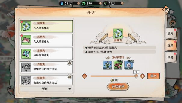 炼制高品质的丹丸需要祖师的宗门等级达到一定等级,并且获得相应的【丹方】才能解锁。