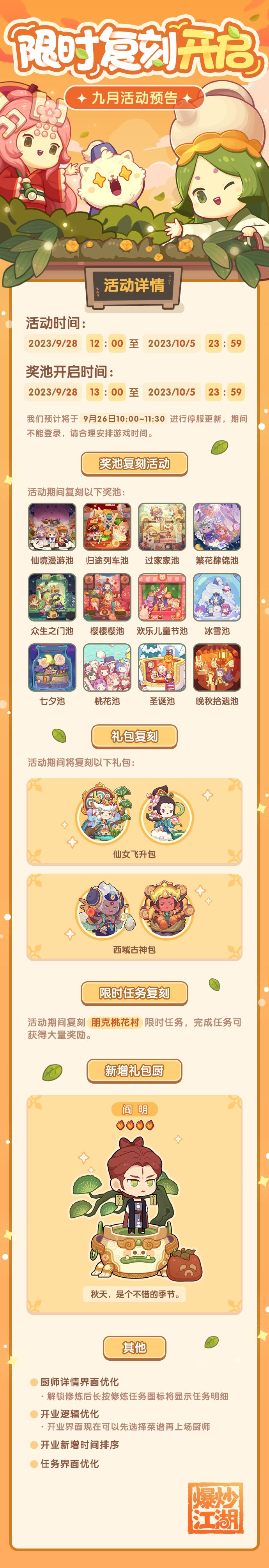 【九月复刻】新厨师新优化来啦!