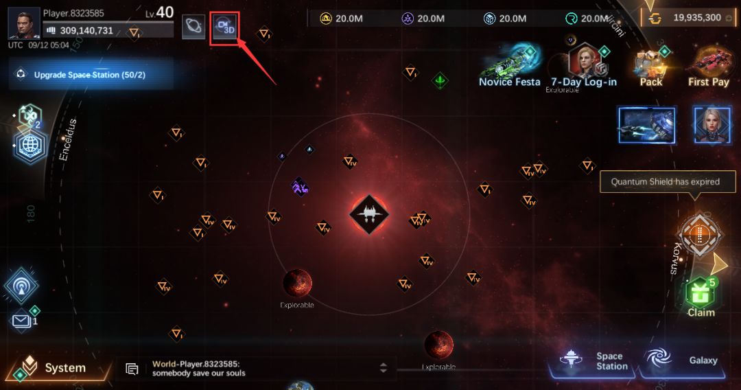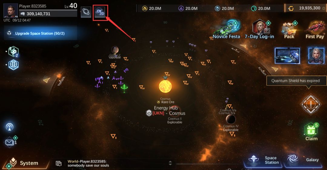 a) 在星系界面,指挥官们可以点击头像信息旁边的2D视角按钮,将游戏切换至2D模式,节省设备性能