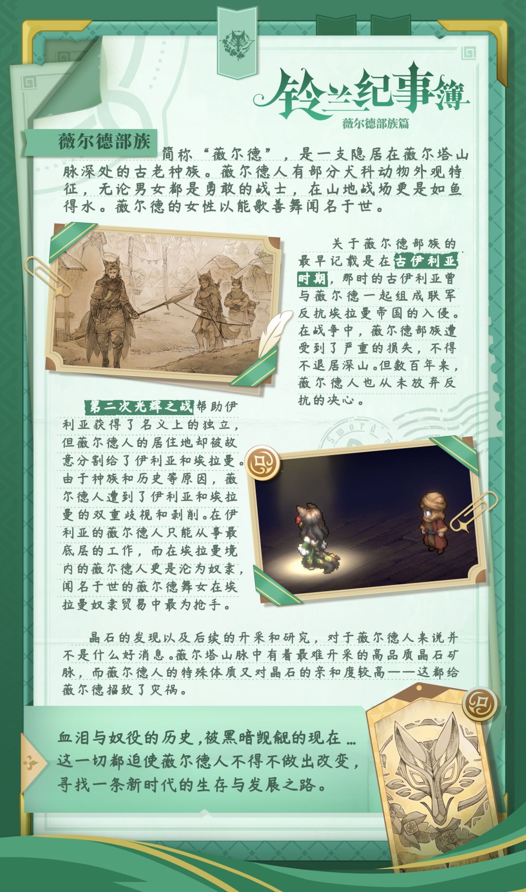 各位团长好!今天给大家带来的是——薇尔德部族的介绍!